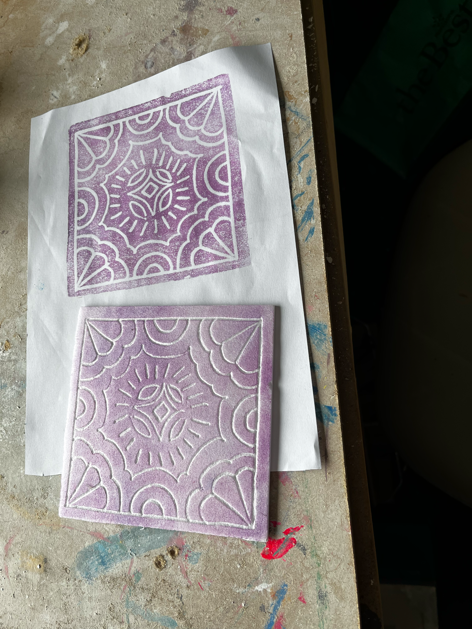 Rachel supports Art curriculum projects: These coasters were made with Old Church, Y4 Primary pupils, inspired by Andy Gilmore.